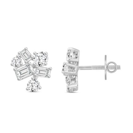 LADIES STUD EARRINGS 1.50CT ROUND/PRINCESS DIAMOND 14K WHITE GOLD