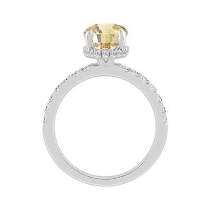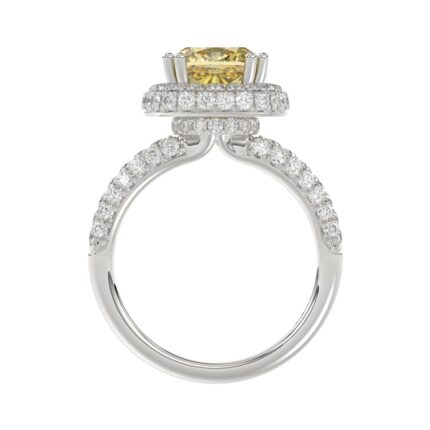 14K WHITE GOLD 3 1/5CT ROUND/YELLOW CUSHION DIAMOND LADIES RING (CENTER STONE YELLOW CUSHION DIAMOND 3CT)
