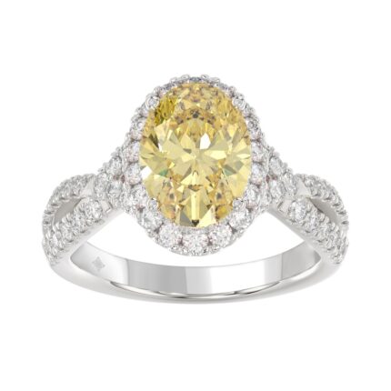 14K WHITE GOLD 3 3/4CT OVAL/ROUND DIAMOND LADIES RING (CENTER STONE YELLOW OVAL DIAMOND 3CT)