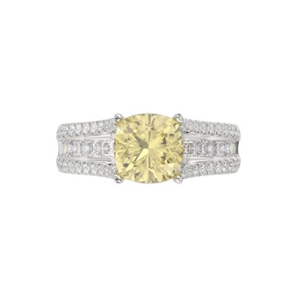 14K WHITE GOLD 4.00CT ROUND/YELLOW CUSHION DIAMOND LADIES RING (CENTER STONE CUSHION YELLOW DIAMOND 3.00CT)