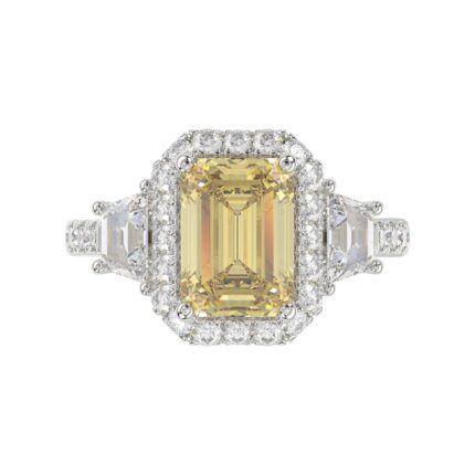 14K WHITE GOLD 4 1/4CT ROUND/TRAPEZOID/RADIANT DIAMOND LADIES RING (CENTER STONE YELLOW RADIANT DIAMOND 3.00CT)