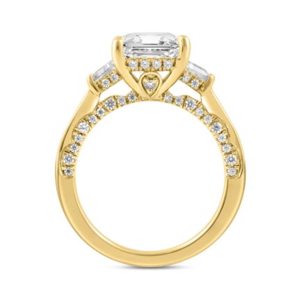Luxury 14K Yellow Gold 4 1/4Ct Radiant & Round Lab Grown Diamond Engagement Ring 3.00Ct Radiant Center Stone With Trapezoid & Baguette Side Stones Tri