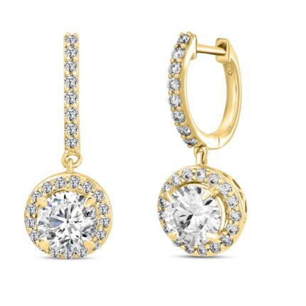 LADIES EARRINGS 2CT ROUND DIAMOND 14K YELLOW GOLD