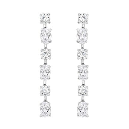 LADIES LINEAR EARRINGS 4 1/2CT OVAL/ROUND DIAMOND 14K WHITE GOLD