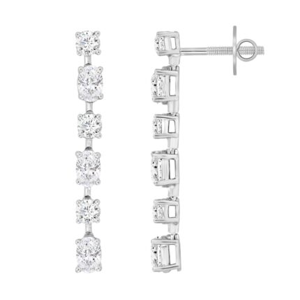 LADIES LINEAR EARRINGS 3CT ROUND DIAMOND 14K WHITE GOLD