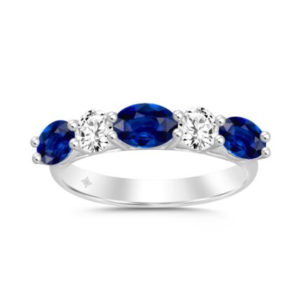 14k Yellow Gold 2CT five-stone ladies Band featuring alternating Round/Oval blue sapphires diamonds (Color F-G -Clarity VS1/VS2)
