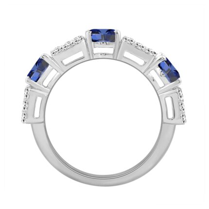 14K WHITE GOLD 2.00CT ROUND/OVAL BLUE SAPPHIRE DIAMOND LADIES BAND