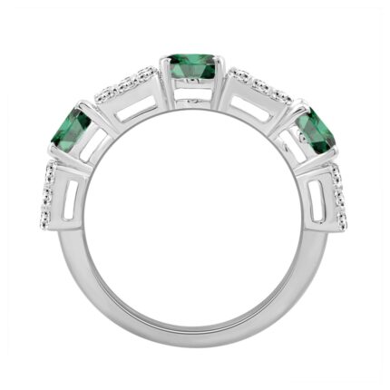 14K WHITE GOLD 3 5/8CT ROUND/BAGUETTE/OVAL DIAMOND LADIES BAND (GREEN EMERALD OVAL 2 1/3CT)