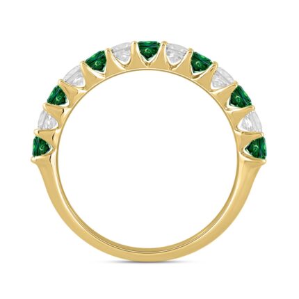 14K Yellow Gold 1.00 CT Princess Green Emerald & White Diamond Alternating Band Ring
