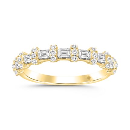 14K YELLOW GOLD 1CT ROUND/EMERALD DIAMOND LADIES BAND