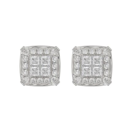10K WHITE GOLD 1.00CT PRINCESS DIAMOND LADIES EARRINGS