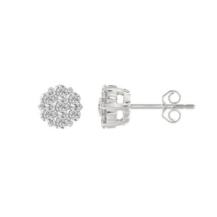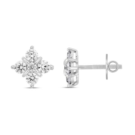 14K WHITE GOLD 1 1/2CT ROUND DIAMOND LADIES FLOWER EARRINGS