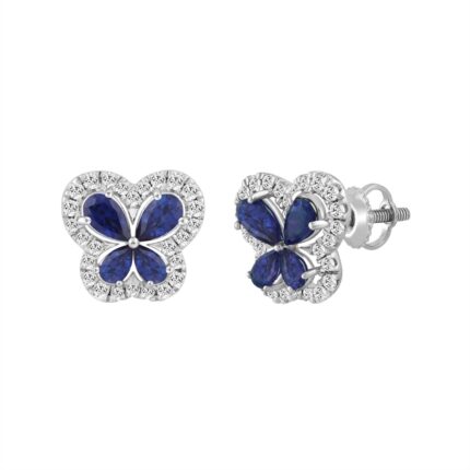 14K WHITE GOLD 1 1/2CT ROUND DIAMOND LADIES EARRINGS (PEAR BLUE SAPPHIRE 8 STONE)