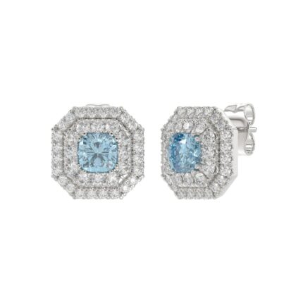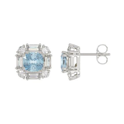 14K WHITE GOLD 1 1/2CT ROUND/BLUE CUSHION DIAMOND LADIES EARRING