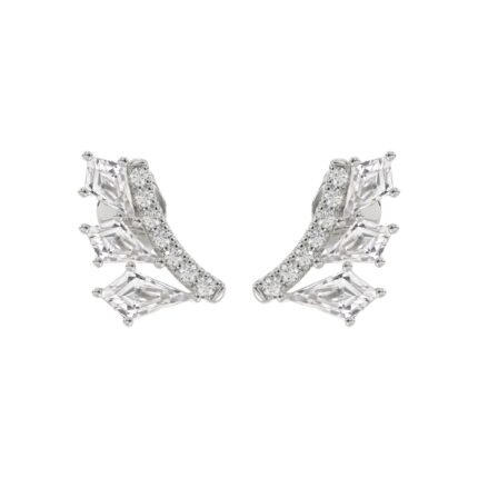 14K WHITE GOLD 1 1/4CT ROUND/BAGUETTE/KITE DIAMOND LADIES EARRINGS