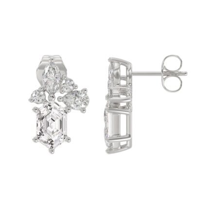 14K WHITE GOLD 1 1/2CT ROUND/MARQUISE/PEAR/HEXAGON STEP CUT LADIES EARRINGS