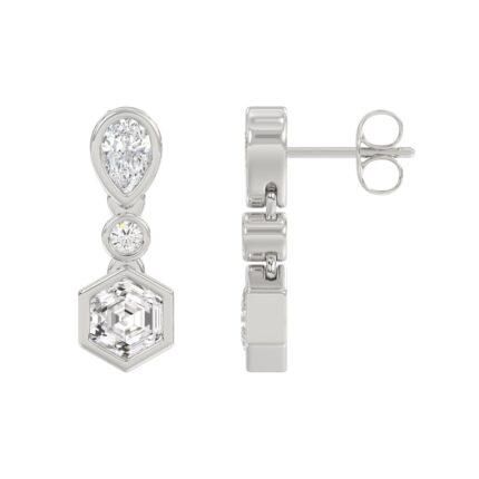 14K WHITE GOLD 1 1/2CT ROUND/PEAR/HEXAGON DIAMOND LADIES EARRINGS
