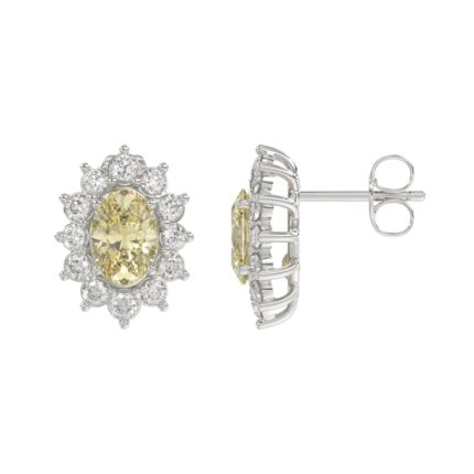 14K WHITE GOLD 1 1/2CT ROUND/YELLOW OVAL DIAMOND LADIES EARRING