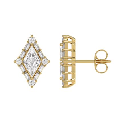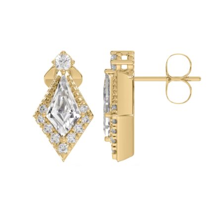 14K YELLOW GOLD 3/4CT ROUND/KITE STEP CUT DIAMOND LADIES EARRINGS
