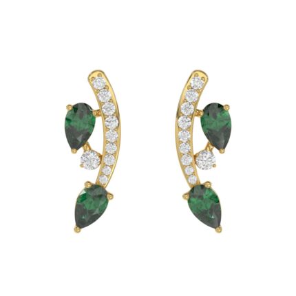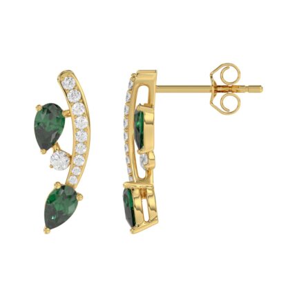 14K YELLOW GOLD 2CT ROUND EMERALD DIAMOND LADIES LINEAR EARRINGS (CENTER STONE EMERALD DIAMOND 1CT )