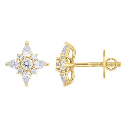 14K YELLOW GOLD 1.00CT ROUND/PRINCESS DIAMOND LADIES EARRINGS