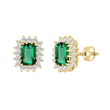 14K YELLOW GOLD 1/2CT ROUND/ROUND GREEN EMERALD DIAMOND LADIES EARRING