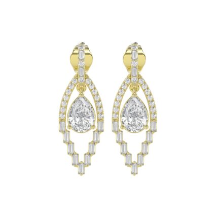 14K YELLOW GOLD 3.00CT PEAR/OVAL/PRINCESS DIAMOND LADIES EARRING