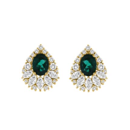 14K YELLOW GOLD 4 1/2CT ROUND/MARQUISE/OVAL DIAMOND LADIES EARRINGS (CENTER STONE GREEN EMERALD OVAL DIAMOND 2 1/2CT)