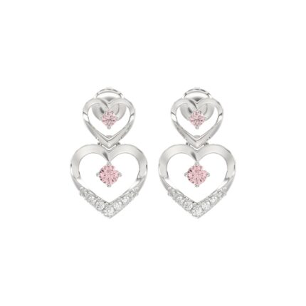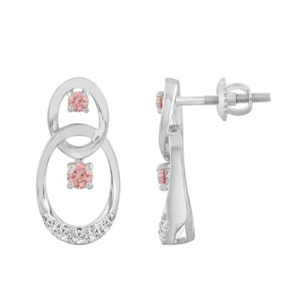 ETERNAL BLUSH COLLECTION LADIES EARRINGS 1/2CT ROUND DIAMOND 14K WHITE GOLD (CENTER STONE PINK ROUND DIAMOND 1/3CT)