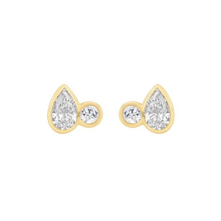 3/4CT Yellow Gold 10K Collection Linked Hearts Two-Stone Diamond Stud Ladies Earrings Round & Pear Cut Diamond (Color F-G -Clarity VS1/VS2)