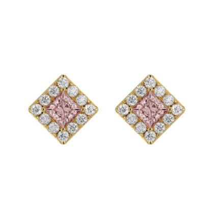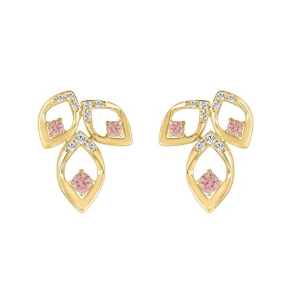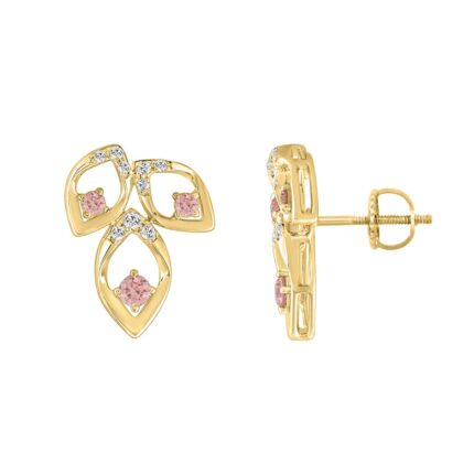 ETERNAL BLUSH COLLECTION LADIES EARRINGS 1/2CT ROUND DIAMOND 14K YELLOW GOLD (CENTER STONE PINK ROUND DIAMOND 1/3CT)