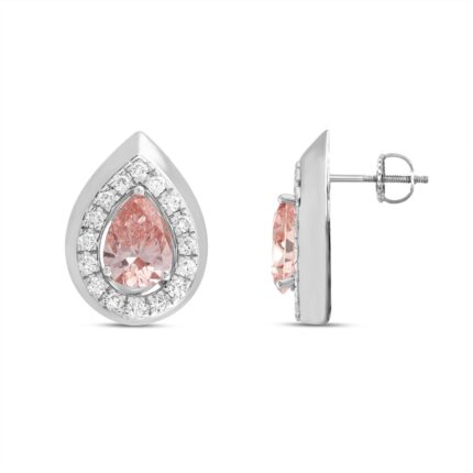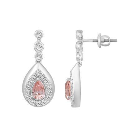 ETERNAL BLUSH COLLECTION LADIES EARRINGS 1 1/3CT ROUND/PEAR DIAMOND 14K WHITE GOLD (CENTER STONE PINK PEAR DIAMOND 1CT)