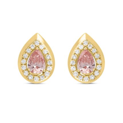 ETERNAL BLUSH COLLECTION LADIES EARRINGS 1 1/2CT ROUND/PEAR DIAMOND 14K YELLOW GOLD (CENTER STONE PINK PEAR DIAMOND 1CT)