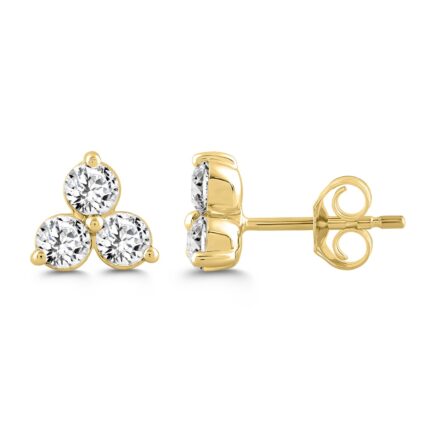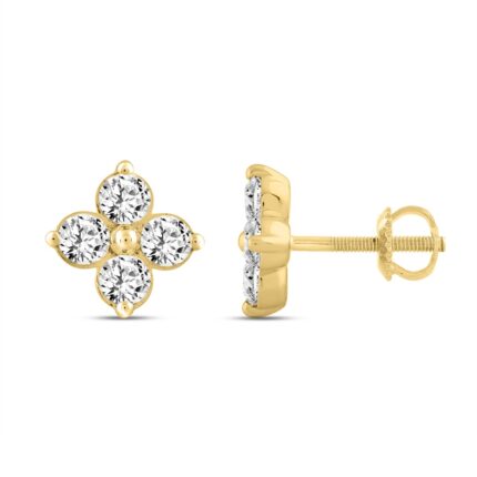 LADIES EARRINGS 1CT ROUND DIAMOND 14K YELLOW GOLD