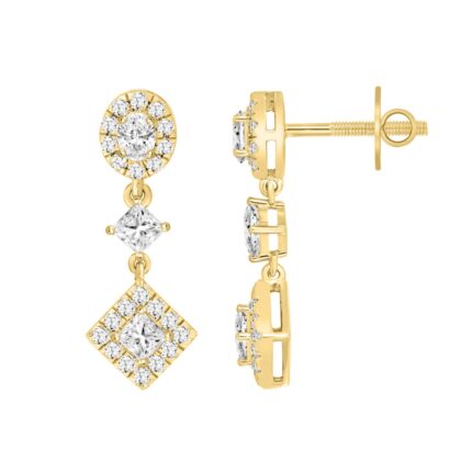 LADIES EARRINGS 1 3/4CT ROUND/OVAL/PRINCESS DIAMOND 14K YELLOW GOLD