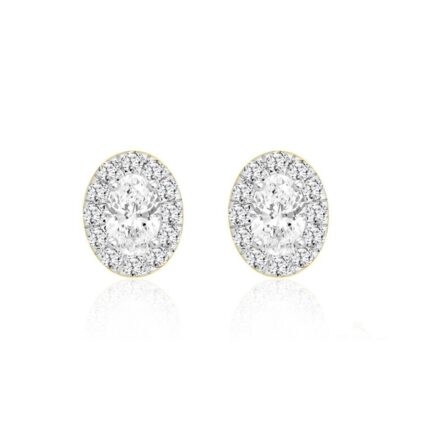 LADIES EARRINGS 1.00CT ROUND/OVAL DIAMOND 18K YELLOW GOLD