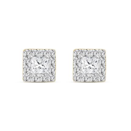 LADIES EARRINGS 1.00CT ROUND/PRINCESS DIAMOND 18K YELLOW GOLD
