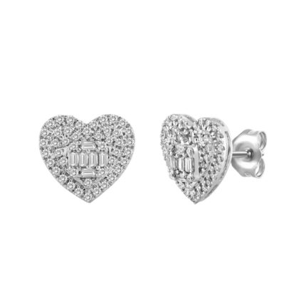 LADIES EARRINGS 1/2CT ROUND/BAGUETTE DIAMOND 14K WHITE GOLD
