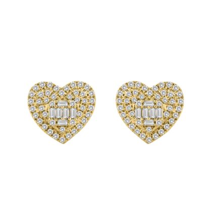 LADIES EARRINGS 1/2CT ROUND/BAGUETTE DIAMOND 14K YELLOW GOLD