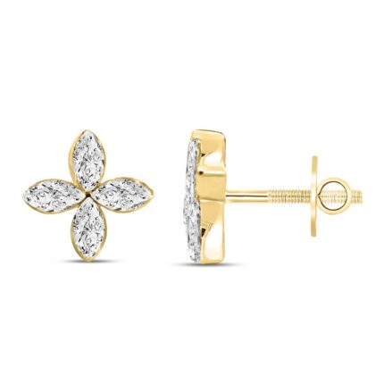 LADIES EARRINGS 1CT MARQUISE DIAMOND 14K YELLOW GOLD