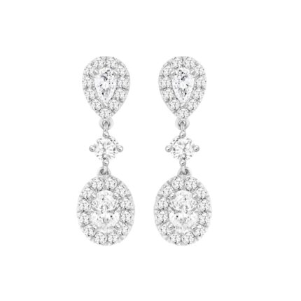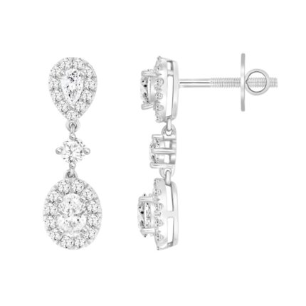 LADIES EARRINGS 1.00CT ROUND/OVAL DIAMOND 18K WHITE GOLD