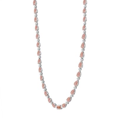 ETERNAL BLUSH COLLECTION LADIES NECKLACE 4 1/2CT ROUND/ PINK PEAR DIAMOND 14K WHITE GOLD