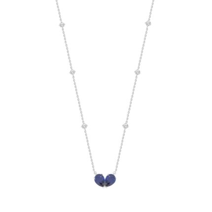 14K WHITE GOLD 2.00CT ROUND/PEAR BLUE SAPPHIRE DIAMOND LADIES NECKLACE