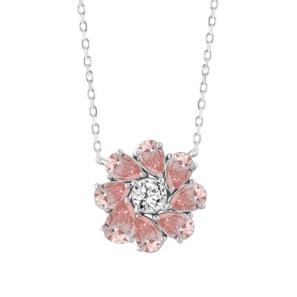 ETERNAL BLUSH COLLECTION LADIES NECKLACE 3/4CT ROUND/PEAR DIAMOND 14K WHITE GOLD (CENTER STONE PINK PEAR DIAMOND 1/2CT)
