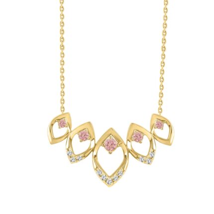 ETERNAL BLUSH COLLECTION LADIES NECKLACE 1/4CT ROUND DIAMOND 14K YELLOW GOLD WITH CHAIN (CENTER STONE PINK ROUND DIAMOND 1/6CT)