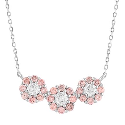 ETERNAL BLUSH COLLECTION LADIES NECKLACE 1/4CT ROUND DIAMOND 14K WHITE GOLD WITH CHAIN (CENTER STONE PINK ROUND DIAMOND 1/6CT)