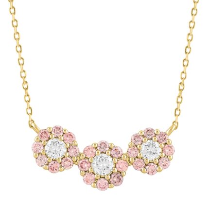 ETERNAL BLUSH COLLECTION LADIES NECKLACE 2CT ROUND DIAMOND 14K YELLOW GOLD WITH CHAIN (ROUND PINK)