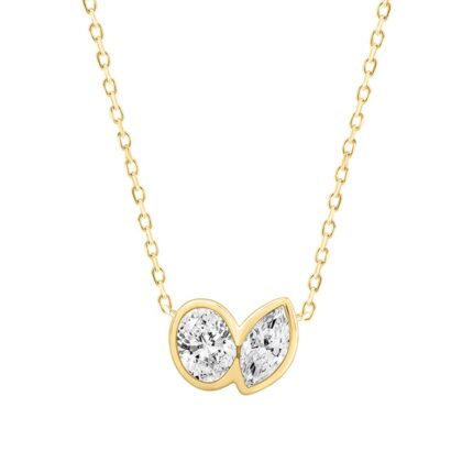 Ladies 3/4CT Oval/Marquise Lab Grown Diamond Ladies Necklace 10K Collection Linked Hearts Yellow Gold (Color F-G Clarity VS1/VS2)