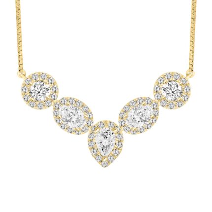 LADIES NECKLACE 2 1/2CT ROUND/PEAR/OVAL DIAMOND 14K YELLOW GOLD