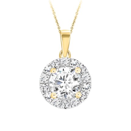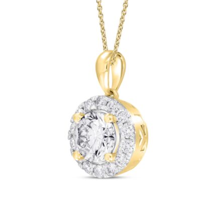 LADIES PENDANT WITH CHAIN 1CT ROUND DIAMOND 14K YELLOW GOLD (CENTER STONE ROUND DIAMOND 3/4CT )